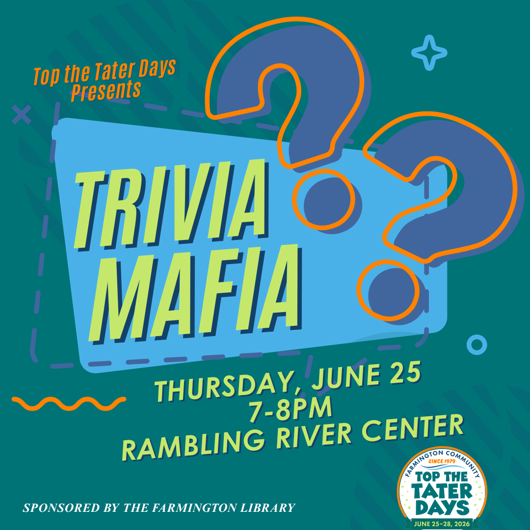 Trivia Mafia is coming to Top the Tater Days! Trivia Mafia is a bar and brewery trivia operation based in Minneapolis, Minnesota. We produce the highest-quality trivia nights in bars, taprooms, distilleries, and private events every night of the week throughout the Midwest (and beyond!). We’ve also been known to run theme trivia nights and other fine pub entertainments.